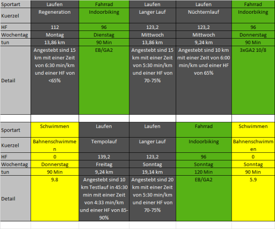 Nachfolgend findet Ihr Details und Bilder zu durchgeführten Läufen, Fahrradtouren, Schwimmeinheiten und was mir sonst noch die Woche über passierte. Ebenso dokumentiere ich hier mein Essverhalten. Viel Spaß beim Lesen und Bilder anschauen.