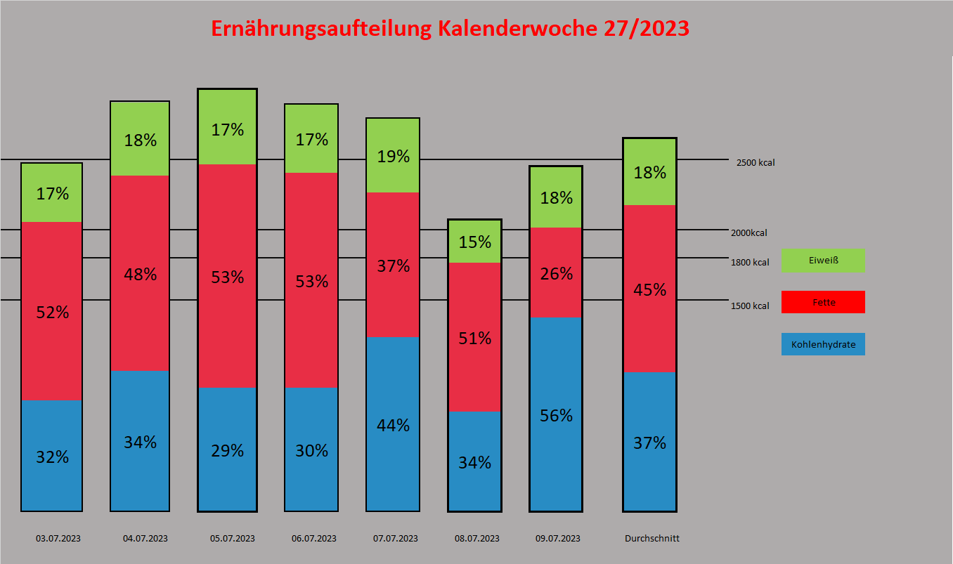 Ich freue mich auf die geplanten Trainingseinheiten und die spannende Arbeitswoche. Das morgendliche Training wird mehr als spannend, die Urlaubszeit meiner Kollegen wird dies wohl verhindern. Ich versuche, ein Schwimmen auf den Dienstag zu legen, da wir sonntags nun immer in die Sauna gehen.