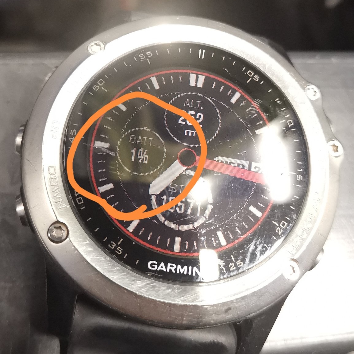 Gestartet bin ich mit einer Restakkukapazität von 5 %. Stromsparend bin ich ohne GPS Signal gelaufen, ich weiß ja, wo es langgeht. Am Ziel zeigte die Uhr noch 1 % an.