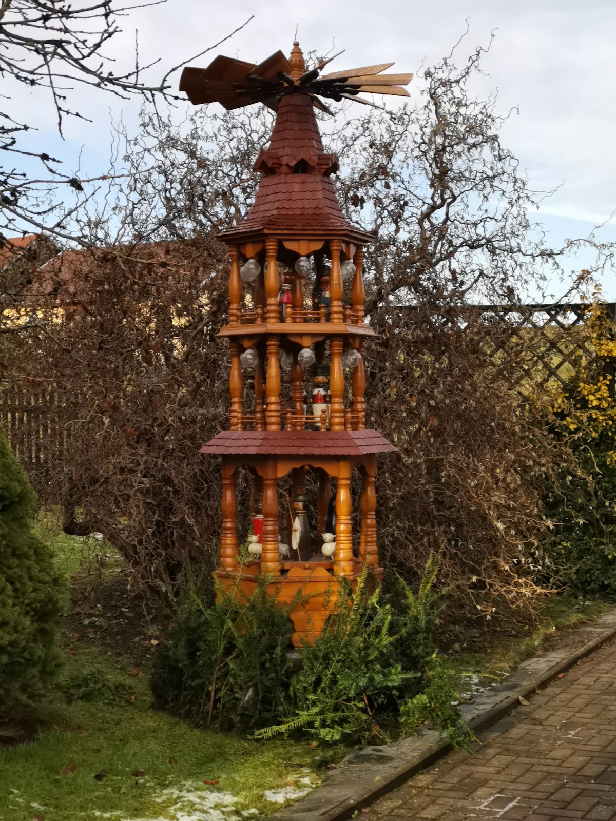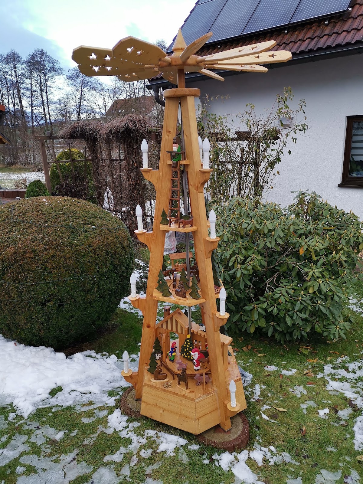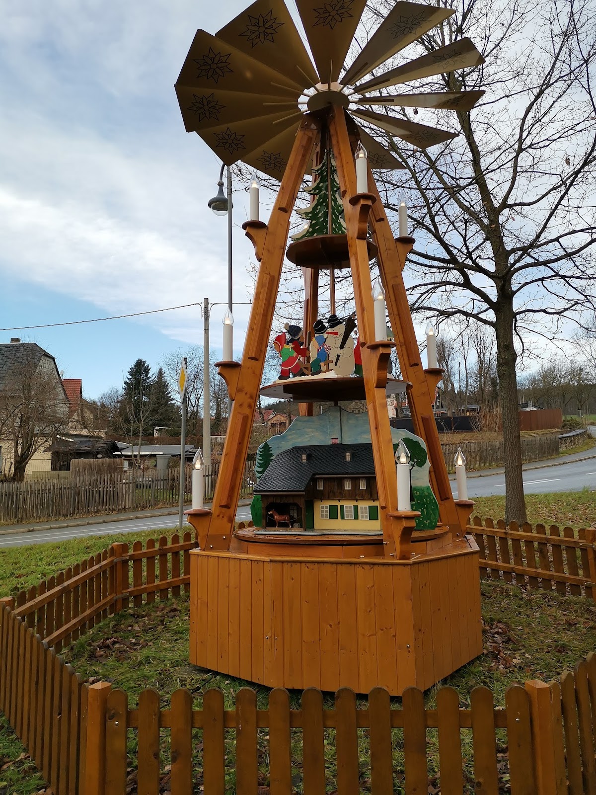Mein zweiter Pyramidenlauf durch das Vogtland führte mich durch die nähere Umgebung. Leider war der Schnee, welcher gestern gefallen war zum größten Teil schon wieder weggetaut. Stellenweise war es aber ganz schön glatt. Ich konnte sowohl im öffentlichen Raum wie auch auf Privatgrundstücken teilweise sehr schöne Pyramiden bewundern.