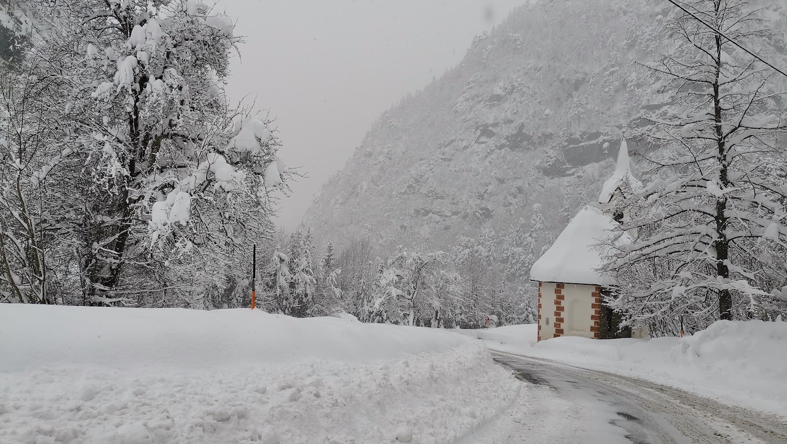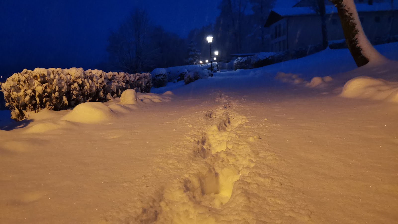 Endlich konnte ich meine morgendliche Runde drehen. Allerdings schneite es über Nacht schön, sodass es stellenweise eine ordentliche Rutschpartie und /oder ein Stapfen durch den Tiefschnee war. Es war aber eine sehr schöne Runde, welche ich mir zusammengestellt hatte. Etwas entsetzt war ich über den Winterdienst, hier erwartete ich in der Alpenregion deutlich mehr.