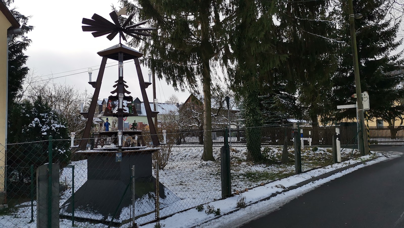 Mein 3. Pyramidenlauf startete in der Nähe meines Brötchengebers in Talditz. Da konnte ich auch gleich die erste Pyramide bewundern. In Plauen war sie leider demontiert. Weiter ging es auf kleinen Feld- und Waldwegen durch diverse vogtländische Dörfer, wo ich noch ein paar weihnachtliche Bauwerke anlaufen konnte.