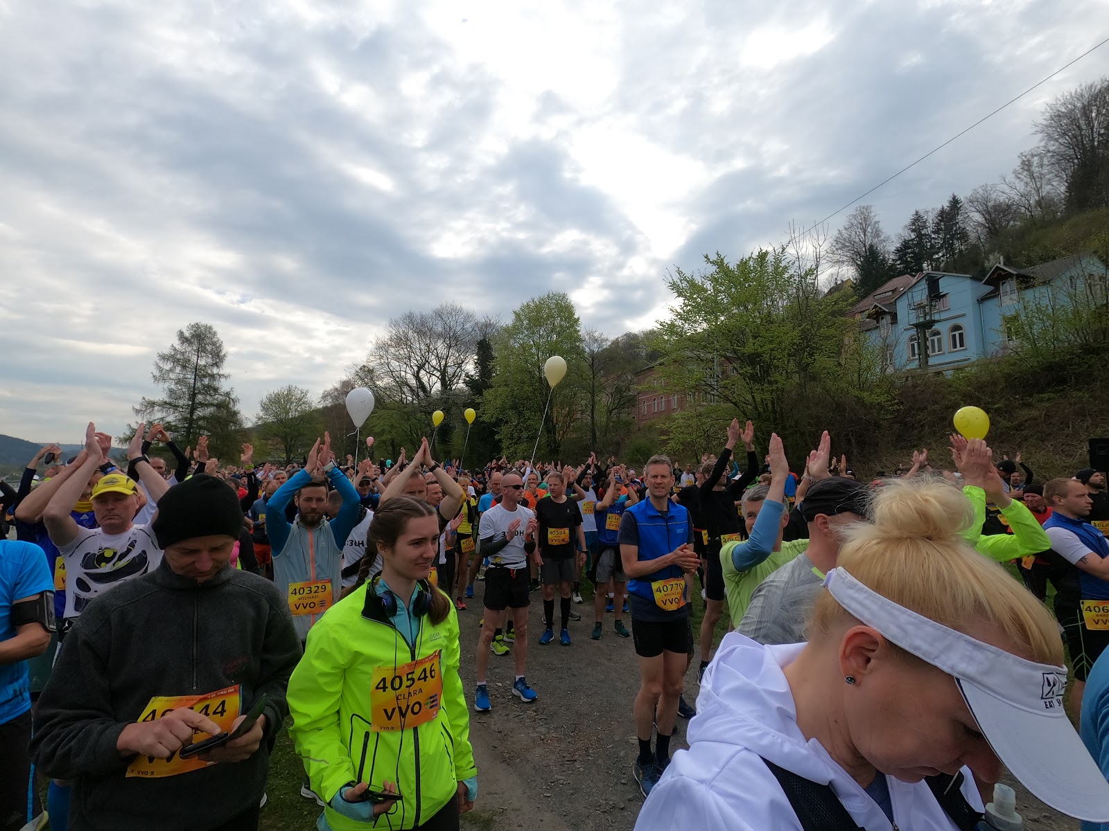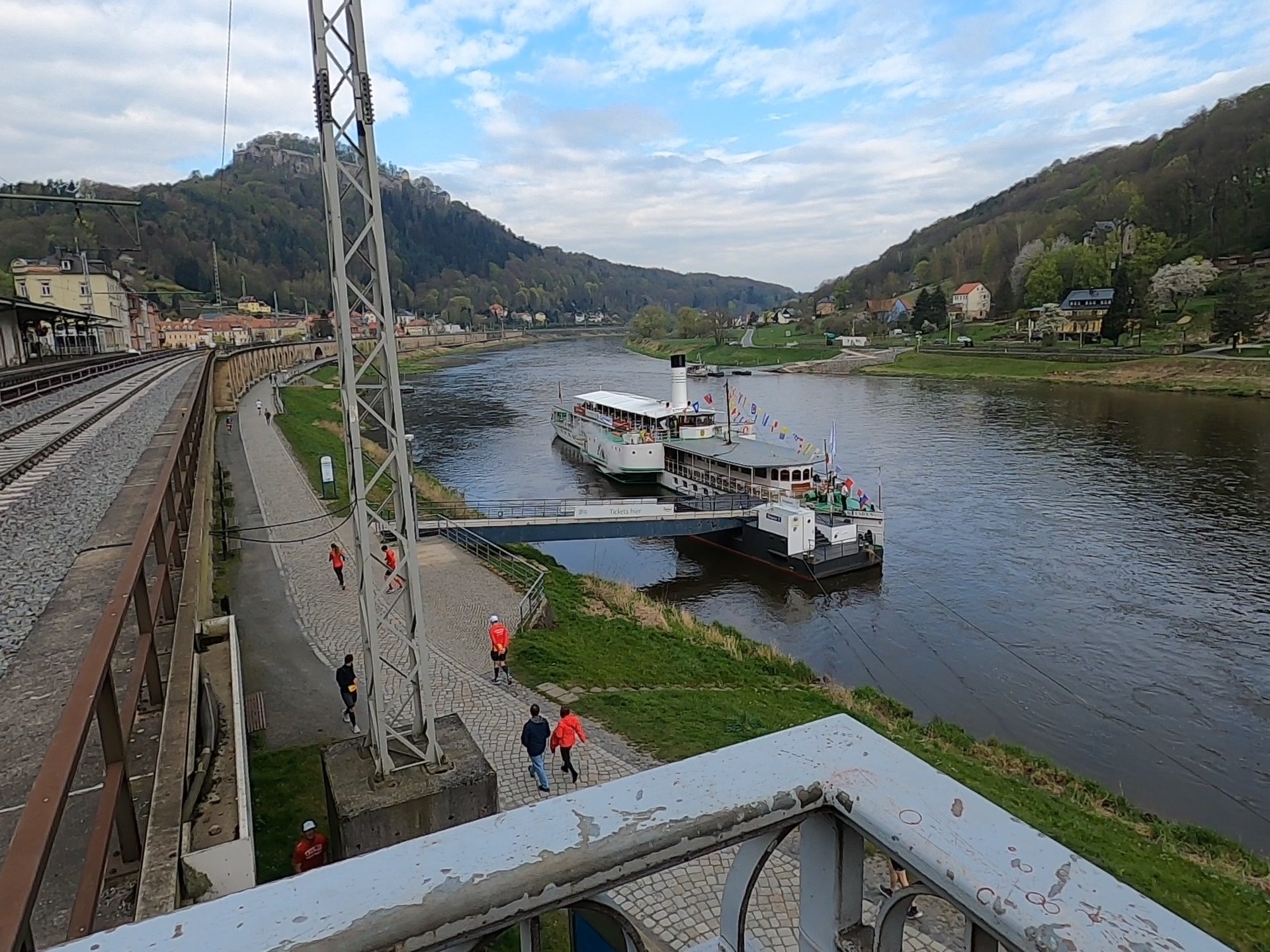 So ging es am frühen Morgen mit dem Auto nach Radebeul, von da aus dann mit dem Zug nach Königstein. Da hatte ich noch Zeit, um mein Gepäck abzugeben, welches im Ziel dann für uns bereitliegt. Dirk und Nicole traf ich noch kurz und dann fiel schon der Startschuss.