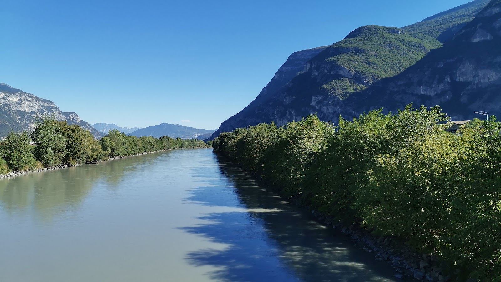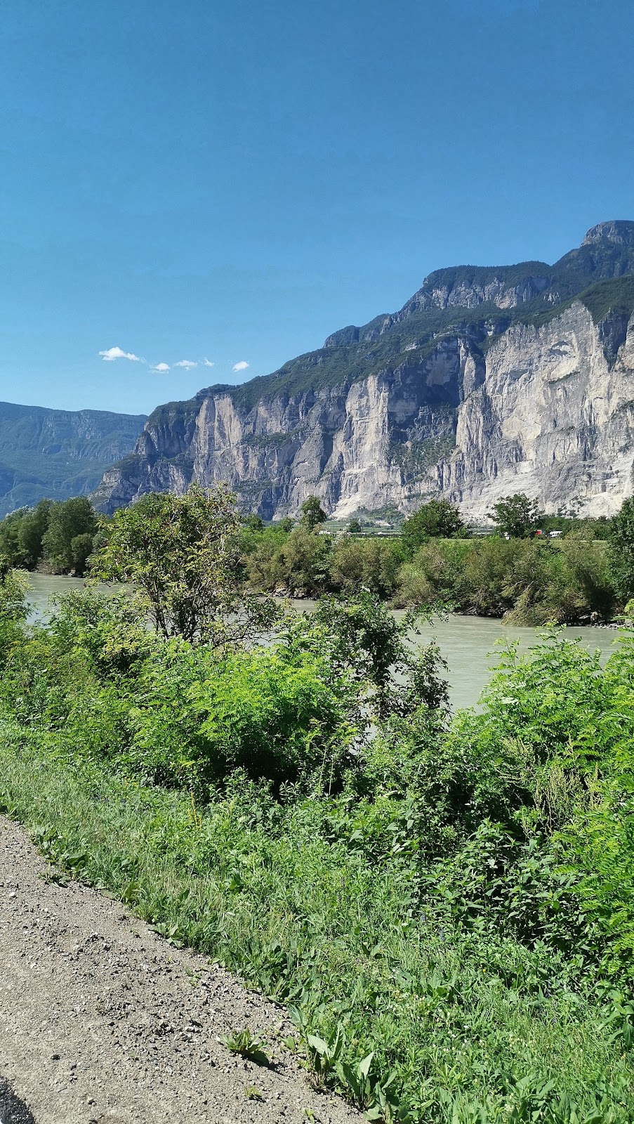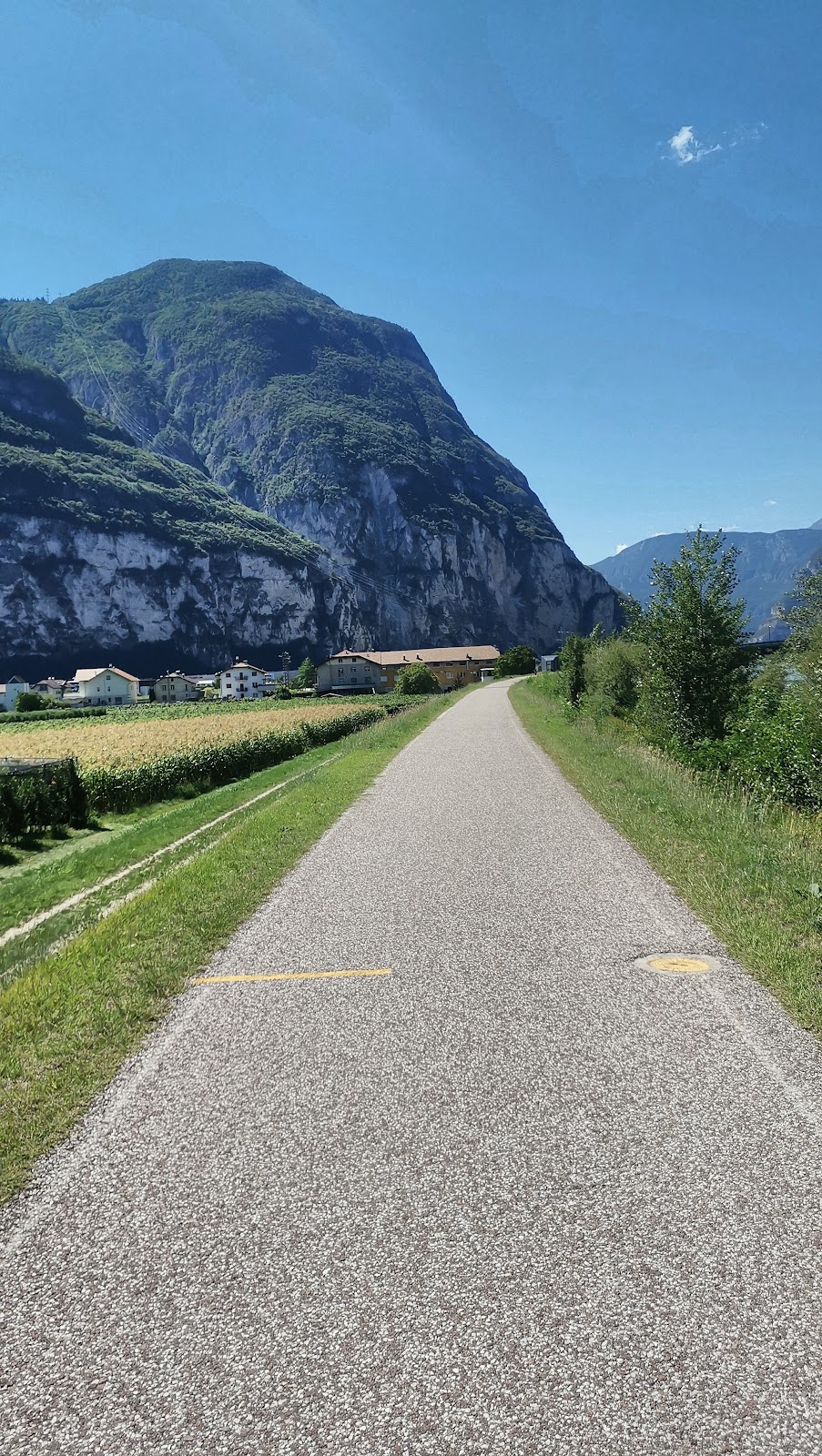 Nach dem die Räder wieder gepackt waren, starteten wir auf dem Radweg nach Riva del Garda. Im Gegensatz zum ersten Tag führte der Weg heute viel mehr parallel an Straßen und der Autobahn entlang. Aber bereits der Fluss oder eine Obst oder Weinplantage reichten aus, den Verkehrslärm zu reduzieren. Die Landschaft wandelte sich von der äußerst schroffen zu etwas liebligen Form. Die Apfelplantagen wurden weniger, dafür war dann der Weinbau dominant.