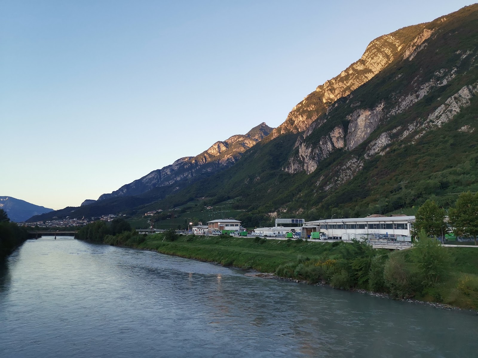Wir rechneten mit mehr Cafés oder Restaurant entlang der Strecke. Auf den 70 Kilometern gab es aber nur eine Stelle zum Wasser auffüllen und auch nur ein Restaurant. Die Natur und auch die Ruhe genießend sind wir gegen 16 Uhr in Trient angekommen. Das Abendessen und ein sehr leckeres Eis gab es im Stadtzentrum. Von unserem Hotel waren es nur zehn Minuten zu laufen. Etwas lästig waren die Tauben und Spatzen. Der Ausblick über den Marktplatz auf den Springbrunnen und die Kirche entschädigte aber mehr als genügend.