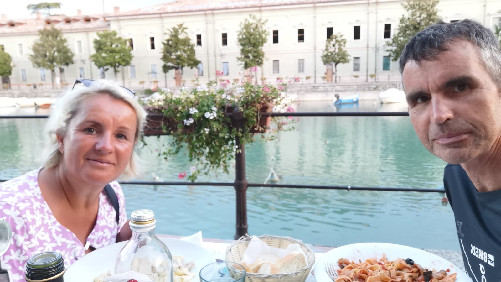 Peschiera del Garda, der Ort hatte uns bei der Fahrradtour entlang des Gardasees gefallen. Im dritten Restaurant aßen wir lecker Abendbrot. Die vorherigen sahen auch gut aus und wir saßen schon drin, aber irgendwas gefiel uns dann immer nicht. Da wir einen schönen letzten Abend aber genießen wollten, prüften wir gründlich.