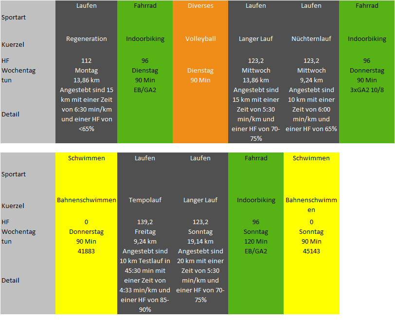 Nachfolgend findet Ihr Details und Bilder zu durchgeführten Läufen, Fahrradtouren, Schwimmeinheiten und was mir sonst noch die Woche über passierte. Ebenso dokumentiere ich hier mein Essverhalten. Viel Spaß beim Lesen und Bilder anschauen.